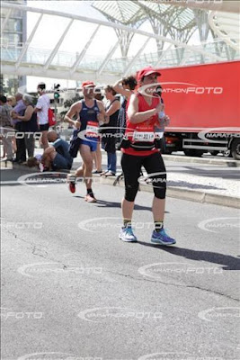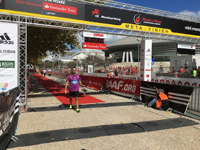 Levamos cerca de meia hora até chegarmos ao tabuleiro da Ponte Vasco da Gama e mais cerca de meia hora até chegarmos à posição de onde iríamos arrancar para a Meia Maratona! Arranquei com a minha lebre e os nossas ovelhas corredoras companheiras avançaram juntos! Como os joelhos de ambos infelizmente ainda não estão a 100%, tiveram que ir ao seu ritmo.... :) Ao arranque as pessoas iam todas muito juntas e houve alguns tropeções valentes que felizmente não acabaram mal.... então saímos do tabuleiro da ponte, virámos em direcção ao Parque das Nações onde estavam percorridos os três primeiros kms! Vinha aí um abastecimento fresquinho!! Seguimos em direcção à Gare do Oriente, quando começamos a ver os primeiros bravos da corrida em cadeiras de rodas!! Pouco depois, os primeiros bravos da maratona! Impressionante!!! Grandes atletas!!! Aí apareceu-nos uma descidinha onde aproveitei para embalar! O km seis apareceu pouco depois e com ele, duas coisas importantes! Um chuveiro para os atletas se refrescarem e mais um belo abastecimento! A água fresca era maravilhosa! Molhei a cara e os braços e bebi uns golinhos de água :) lá ia eu e a minha lebre companheiros!! :) Fomos andando e os kms foram passando rapidinho! O km oito foi marcado por uma subida enorme em Marvila e aí a minha lebre distanciou-se um pouco, mas na descida consegui alcança-lo e continuar com ele :) avançamos em direcção a Santa Apolónia e o sol encoberto por uma nuvem amiga ou as sombrinhas das árvores foram-nos defendendo do calor que começava a apertar! Íamos assim, relativamente frescos! Fomos andando e alcançamos o km dez! E eu pensei... "se fosse 10 kms, tinha sido simples!" mas não eram 10 kms e por isso, metade do percurso já estava ;) Fomos correndo e demos com a subida gigante a chegar a Santa Apolónia!! A custo, lá fui eu!! E na descida apanhai a minha lebre! Pouco depois precisei de parar.... os meus joelhos pediam calma! E andei um pouquinho e retomei a corrida... mas como não estava seguro que conseguisse correr muito mais até voltar a parar, e como a minha lebre não pode estar sempre a andar e a correr, caminhou um pouco mais e eu fui correndo vagarinho para ganhar distancia e ele poder correr seguido até me apanhar de novo :) voltamos a encontrar-nos logo depois!! Mas ele ia aflito dos joelhos por correr mais devagar para me apanhar e disse-me para seguir... resisti mas acabei por ceder... e segui sem a minha lebre :( ao km 14 havia laranja fresca, banana, água e poweraid!! Trouxe um pouco de cada coisa!! Estava com sede e calor e a poweraid fresca foi um balsamo!!! Pouco depois encontrei uma cara conhecida! A Cláudia da Açoreana que nos acompanhou na milha em Liverpool e fui correndo com ela :) entretanto, vejo do lado direito da via, na ciclovia duas "costas" conhecidas!!! Uma cor de rosa e uma roxa a dizer "Madrid 10 km" eram as nossas ovelhas companheiras!!! Ainda a larga distancia fui buscar forças bem ao fundinho de mim e gritei: "SUSANAAAAAAA!!!!" e os nossos companheiros olharam imediatamente para trás!! Que alegria imensa vê-losssss!! Eles estavam bem!! A caminhar mas bem!!! Disse adeus e disse para levarem com eles a minha lebre que ia aflita dos joelhos!! E nunca mais vi nenhum dos três.... Ainda passamos por mais um chuveiro com o alto patrocínio dos Bombeiros que felizmente refrescaram a malta :) Acabei por me separar da Cláudia perto do km dezasseis.... os meus gémeos gritavam! E eu tive que caminhar um pouco! Ela perguntou se eu estava bem e eu disse que sim e disse para ela seguir sem mim! E lá foi ela :) Vi-a desaparecer na multidão!! Fui seguindo e ao km 17 havia mais um abastecimento! E trouxe mais uma agua e dois copinhos de poweraid super frescos! Que alivio!! O meu organismo precisava de algo que lhe desse força para chegar ao fim! Pena que o abastecimento de água estava quente.... Segui e no km 19 havia agua... tive para não aceitar, mas acabei pro trazer a água.... e havia uma subidinha bem tramada ainda pela frente.... decidi fazê-la a andar e quando lá chegasse a cima... ia correr! Quase no fim da subida avisto o que me parece ser uma cara conhecida! Mas eu sem óculos.... e a cara conhecida começou a dirigir-se a mim e diz: "Grande Patifa!!!"! Era o meu querido amigo Rui Ramalho!! Esse grande atleta!!!! Ele "levou-me" ate quase à Gare do Oriente! Deu-me umas dicas preciosas para resistir mais um pouco e chegar à meta!! Foi tão bom vê-lo!!!!!! Continuei sozinha e a minha lebre não me saía do pensamento! Não queria passar a meta sozinha!!! Ele ficou aflito dos joelhos por correr comigo e era justo ele acabar pelo menos comigo!!! Senão antes.... Havia muita animação na Gare do Oriente e o calor apertava.... lá abri a garrafa de água e molhei-me para me refrescar!