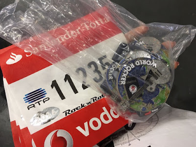 Há já uns dias que andava cheia de nervoso miudinho por causa desta aventura épica! Na sexta-feira a minha companheira ovelha gémea foi buscar os nossos dorsais e trouxe a nossa medalha World Rocker!! A World Rocker é uma medalha dada a quem corre duas ou mais corridas Rock n' Roll no mesmo ano, numa distancia superior a 10 kms! Como já tínhamos corrido a Meia Maratona de Liverpool.... e agora íamos para a de Lisboa... tivemos direito a elaaaaaa!!! :D