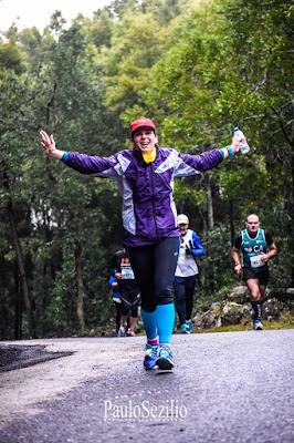 Os kms foram passando por entre subidas e descidas :) Fomos andando e pouco à frente encontramos uma Sra, que só mais tarde soube que se chamava Sofia :) ela ia cansada e eu meti-me com ela :) "bora lá que agora é a direito!!" e a Sra foi muito simpática connosco :) fomos-nos acompanhando até ao segundo abastecimento :) onde havia mais água fresca :) Passado a abastecimento estava o que muitas vezes ouvimos chamar de "muro"! Sim... MURO!!! Foi uma subida de praticamente 1 km que para mim, até a andar ela era exigente!! Mas fizemos!! Pouco depois a rampa começou a desvanecer-se e começamos a conseguir correr um pouco mais :) continuamos o nosso caminho e apareceu um novo fotografo :)