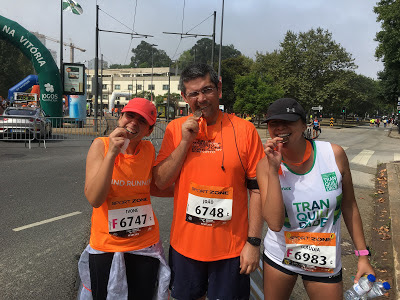 Fui feita doida para a distancia sprint :) ou seja, a distancia acima das que fiz nos triatlos.... fiz 750 metros a nadar e 5 kms de corrida....! Foi uma tremenda superação para mim!!! E uma felicidade inexplicável por ter uma vez mais, enfrentado o mar de cabeça erguida e, ter nadado sem medo uma distancia tao grande para mim!! Um GIGANTE obrigada à minha lebre!! Companheiro inseparável e apoio incansável!!!!! :D