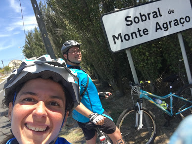 Guardados os telemoveis e prontos para arrancar a minha lebre em tom muito sério disse-me: "Vais ter que por mesmo a avózinha!!! Senão chegas lá acima sem joelhos!!!" e eu: "e se a mudança nao desengatar?" e ele: "não faz mal, depois resolvemos!!!" e assim fiz!! começamos a subir e meti a avózinha! Ainda tive a sensação que estava a "meter um prego" mas a mudança entrou à segunda tentativa!! Fiz o meu bailado do costume a achar que me ia "esbardalhar", mas não :D até ali já tínhamos feito algumas subidas... mas esta.... esta foi de respeito! Cerca de 3 kms bem a subir! O sol estava muito quente! A minha lebre ia à minha frente e eu sempre de olho nele! Subimos e subimos e subimos! No fim dos 3 kms a minha lebre esperava-me com uma aguinha bem boa!! Quando parei a bike senti uma coisa que até então nunca tinha sentido a andar de bike na rua.... a transpiração escorria-me pelo queixo e caía no guiador!! Bebemos a nossa aguinha e seguimos!! O Sobral aguardava-nos!!! :D